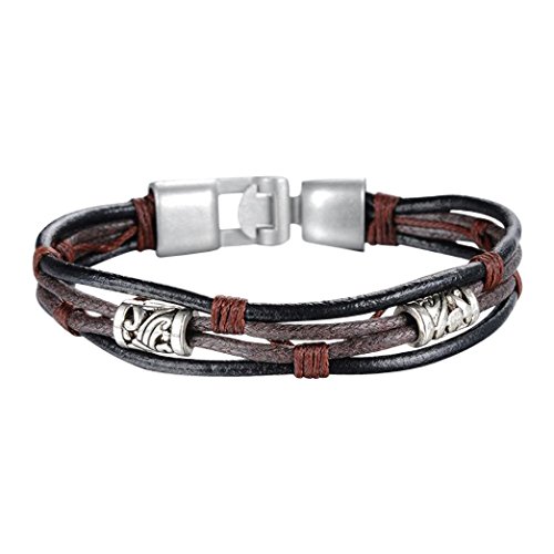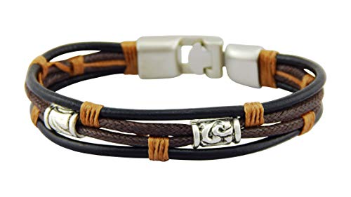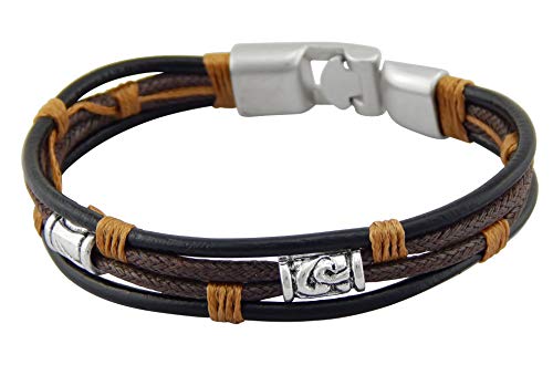 Specification: Hanessa Leder Surfer-Armband in Braun Silber Verschluß Herren-Schmuck Geschenk zu Weihnachten für den Freund/Mann