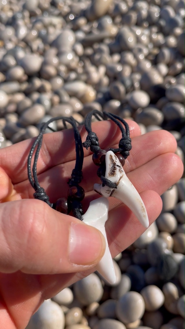 【 WORN SURFACE FINISH 】 Handgefertigt mit gewachstem Seil, Holzperlen, starken Knoten, Plastikzahn von großer natürlicher Verwandtschaft.