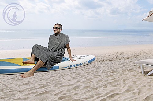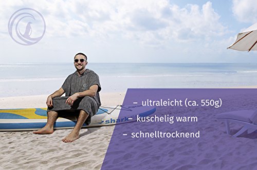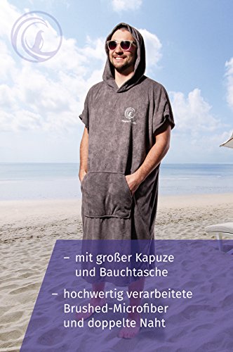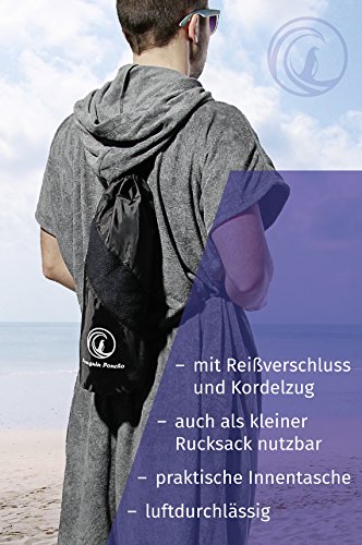 Specification: Penguin Poncho – nachhaltiger Surf Poncho mit Tragebeutel in Einheitsgröße (S-XL) – gemütlicher Bademantel und Umkleidehilfe für Damen und Herren – mit Kapuze & Bauchtasche(spume grey/BMT)
