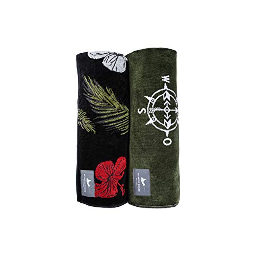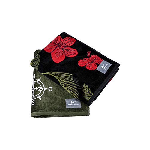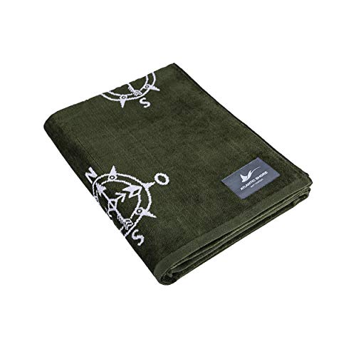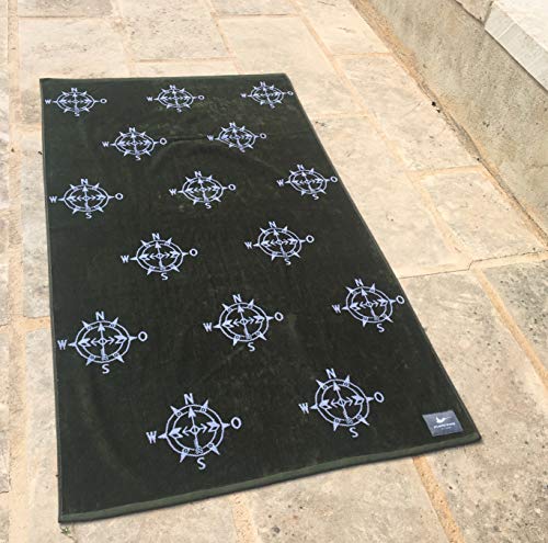 Specification: ATLANTIC SHORE | Beach Towel | Strandtuch aus 100% Baumwolle (Oeko-Tex) | 160 x 90 cm in Olive/White | Compass