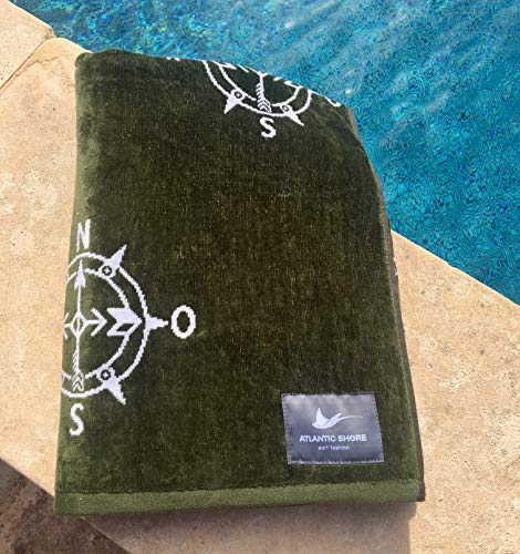 ATLANTIC SHORE | Beach Towel | Strandtuch aus 100% Baumwolle (Oeko-Tex) | 160 x 90 cm in Olive/White | Compass