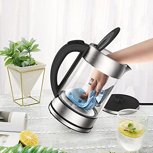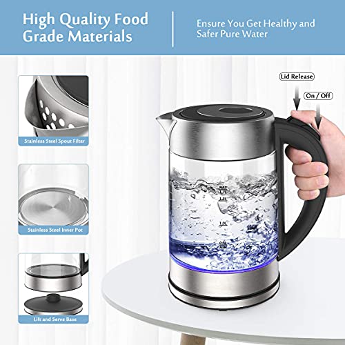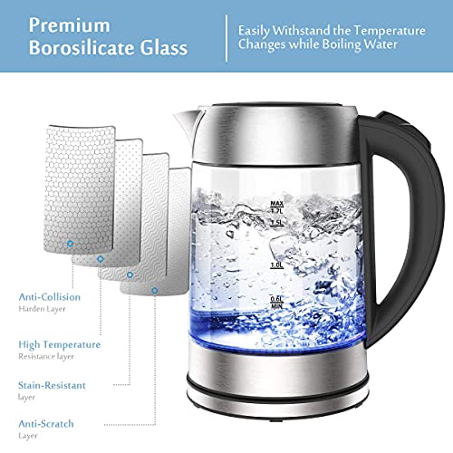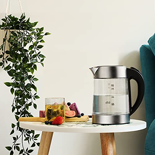 Specification: Glas Wasserkocher, 1,7 L, 2200 W Wasserkocher mit 5 Temperaturregelung 40-90°C, Cautomatische Abschaltfunktion, Schnellheizfunktion, Glaskessel I Glaswasserkocher Edelstahl I Teekessel mit Warmhaltefunktion BPA Frei