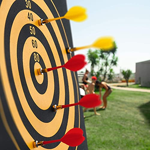 Draagbaar en duurzaam: ons dartbord kan gemakkelijk worden verplaatst en overal worden opgehangen. Je kunt dit dartbord gemakkelijk oprollen en ruimte besparen voor het opbergen of op reis. Het bordspel wordt geleverd met een hoogwaardig dartbord en 12 darts in vier verschillende kleuren.