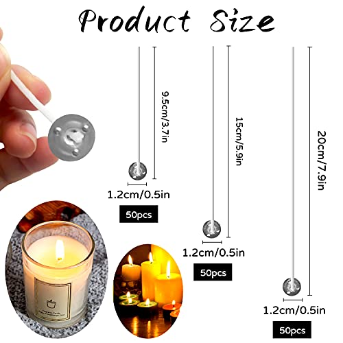 🔥 【3 verschillende maten】De lengte van deze kaarsen is 95 mm, 150 mm en 200 mm, elke maat voor 50 stuks, in totaal 150 stuks; de metalen basisdiameter bedraagt 12 mm.