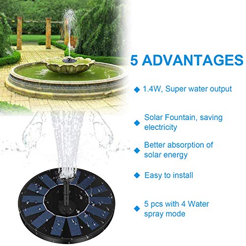 Specification: PREUP Solar Springbrunnen, Solar Teichpumpe Garten Wasserpumpe mit 1,4W Monokristalline Solar Panel Brunnen, Schwimmender Dekoration für Garten, Kleiner teich, Vogelbad, Fisch-Behälter, Pool