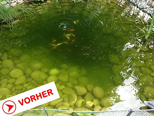 De ontbinding van de algen vraagt zuurstof, zorg daarom voor voldoende toevoer van zuurstof indien er vissen in de vijver zijn. Uv-lichten uitschakelen tijdens het gebruik.
